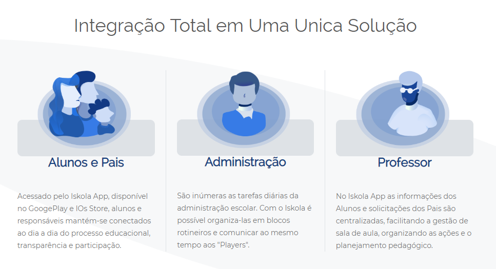 O App Iskola é um software 100% WEB que administra as instituições de ensino, organizando e criando rotinas nas áreas: